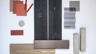 Die Zusammenstellung der ADLER Woodboards beschreibt Barbara Poberschnigg als „Materialorchester“: Da gibt es die Violinen, die fast immer zu hören sind und deshalb dezent klingen müssen – „auf die Raumgestaltung übertragen ist das z.B. ein helles Holz, das auf Möbeln, Boden oder Decke verwendet wird.“ Andere Instrumente wie Pauke oder Triangel setzen einzelne, dafür aber starke Akzente – so wie ein kräftiger Farbton an einem Möbelstück oder ein schöner Hell-Dunkel-Kontrast. Damit verleiht der Material-Mix jedem Raum seine individuelle Atmosphäre. Ein heimeliges skandinavisches Wohngefühl wie beim Interior-Woodboard „Nordic Blue“ etwa, das mit hell gebeizten Flächen (ADLER Arova Style) viel Ruhe vermittelt, die mit Kontrasten belebt wird: mit dem markant positiven Beizbild von ADLER Arova Alpin Trend auf grob gebürsteter Fichte, dem kühlen Blauton der Farbbeize ADLER Arova Colora und der Echtbeton-Oberfläche von ADLER Bluefin Pure-Concrete. Gestaltungsideen für den Außenbereich liefert das Exterior-Materialboard „Black Gold“: Hier steht die Metallic-Lasur Lignovit Platin in den edlen Farbtönen Hematitschwarz und Nascagold einem kräftigen Farbakzent in Thulitrot gegenüber, die Fensterlasur Aquawood Finapro Carat in Pyritgrau rundet das Gesamtbild ab.
