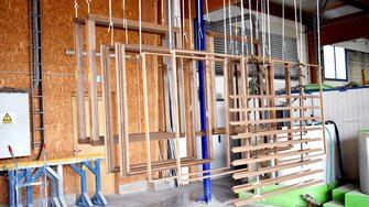 Noch vor der Beschichtung werden die Fensterkanteln manuell kontrolliert und gegebenenfalls ausgebessert. Danach werden sie im Flowcoroll-Fluttunnel imprägniert und grundiert, anschließend getrocknet und maschinell zwischengeschliffen. Durch die Flutung am Einzelteil statt am bereits zusammengebauten Rahmen wird Platz in der Produktionshalle eingespart, zudem können die Kanteln von allen Seiten lückenlos abgedeckt werden – mit der Imprägnierung Aquawood Primo von ADLER ist damit ein optimaler Holzschutz garantiert. Danach werden die Rahmen verpresst und in den RoboterSpritzkreislauf geführt. Den beiden Spritzrobotern sind 3D-Scanner vorgeschaltet, die die Form jedes einzelnen Fensters erfassen und den optimalen Lackierablauf errechnen. Nach der Erstbeschichtung mit ADLER Aquawood Intercare ISO für deckend bzw. ADLER Aquawood Intermedio SQ für lasierend beschichtete Fenster folgt ein Zwischenschliff am hängenden Fenster. Anschließend werden die Fenster schlusslackiert, wobei ein automatischer Farbtonwechsler einen Lack-Wechsel innerhalb von nur drei Minuten ermöglicht. Zwischen allen Fertigungsstufen im Produktionsprozess sind Pufferzonen eingerichtet, wodurch Wartezeiten verhindert werden. Insgesamt können so bis zu 60 Fenster täglich lackiert werden – jedes von ihnen ein Einzelstück.