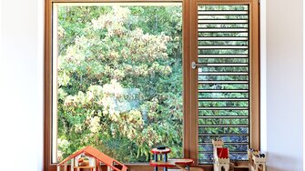 Individuell gestaltete Fenster zu fertigen ist das eine. Herauszufinden, wie diese Fenster aussehen sollten, welche WünFotos: OST-Fenster sche der jeweilige Kunde hat und wie sie sich umsetzen lassen, ist das andere. Dafür setzt OST auf umfassenden Kundenservice von der Erstberatung bis zum regelmäßigen Wartungsservice. Neben den technischen Anforderungen an das Fenster ist dabei die Oberflächengestaltung ein zentrales Thema. Im Schauraum von OST – eingerichtet in einem großen Wintergarten am Unternehmenssitz in Grevenmacher – finden Endkunden und Architekten Inspiration in Sachen Optik und Haptik, Materialien und Gestaltungsmöglichkeiten. Für farbige Fenster, die OST in jedem RAL- oder NCS-Farbton realisiert, setzt der Hersteller auf das wasserbasierte System Aquawood Covapro von ADLER, das neben ausgezeichneter Deckkraft und Farbtonstabilität auch mit hervorragendem Witterungsschutz punktet. Für eine spektakuläre Metallic-Optik hat OST die Effektlasur Aquawood Finapro Carat im Angebot, bei der Spezialpigmente für einen schimmernden Look und optimalen UV-Schutz sorgen. Und auch für den von Kunden immer häufiger geäußerten Wunsch nach einer möglichst natürlichen Oberflächengestaltung von HolzAlu-Fenstern wurde der Fensterhersteller bei ADLER fündig: Aquawood Nativa betont die natürliche Optik und Haptik des Holzes, besticht durch eine bisher ungekannte Brillanz auf dunklen Hölzern und garantiert dennoch perfekten Schutz. „Mit Aquawood Nativa erreichen wir einen Grad an Natürlichkeit in Optik und Haptik, der bislang undenkbar schien“, schwärmt Sven Hilger.