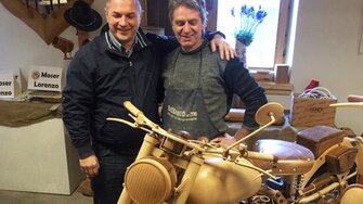 Denn dort erwarteten sie einzigartige Kunstwerke, die das Kind im Manne wecken. Ein Motorrad, eine Flinte, eine Motorsäge – alles komplett aus Holz gefertigt! Vom Reifen bis zum Bremspedal, vom Visier bis zur Patrone, von der Kette bis zum Sicherheitsbügel: jedes noch so kleine Detail ist originalgetreu nachgebaut.