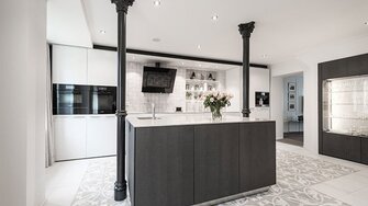 Zwei verschiedene Gewinner gab es dagegen in der Kategorie „Küchenumbau”. Die Jury entschied sich für das „sehr sehenswerte Alt-Neu-Konzept” der „Bulthaup B 3”. In einem historischen Gebäude in der Zofinger Stadtmauer hat das Unternehmen eine Küche realisiert, die auf raffinierte Art und Weise moderne Elemente mit Nostalgie verbindet. Alle Ansprüche an eine zeitgemäße Küche werden erfüllt, gleichzeitig fügt sich die Küche nahtlos in das historische Umfeld des Gebäudes ein.