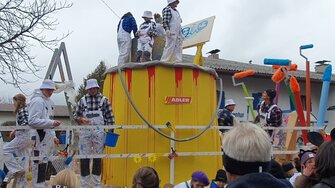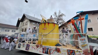 Eine Extraportion Farbe in die närrische Zeit brachte die Faschingsgilde Reutte. Unterstützt von Robert Fringer vom Außerferner Farbenmarkt stellte sie die ADLER-Dose in den Mittelpunkt des „malerischen“ Treibens. Begleitet von kunterbunten Künstlern und Klecksern zog der Dosenwagen in Reutte und Schwangau seine Runden – und alle Blicke auf sich.