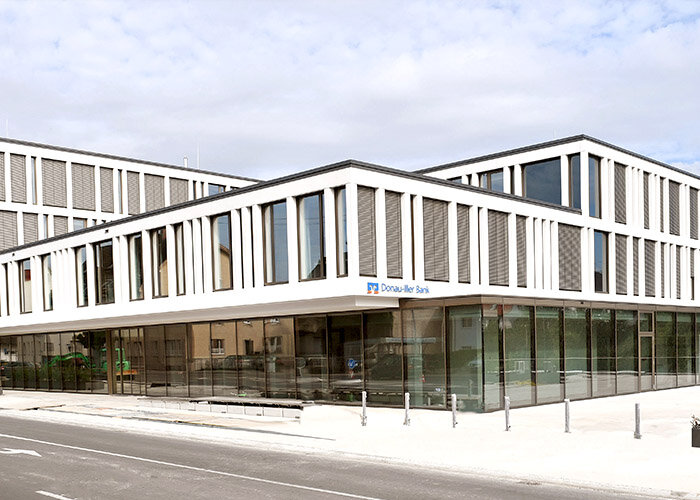 „Diese Gestaltungsidee haben wir auch für die beiden Empfangsmöbel im Vorstandssekretariat aufgenommen“, schildert Michael Bucher von der Schreinerei Wirth Bucher aus Bad Waldsee, der für die außergewöhnliche Bankeinrichtung verantwortlich zeichnet. Er und seine rund 15 Mitarbeiterinnen und Mitarbeiter sind Experten für außergewöhnliche, hochwertige Projekte, von selbst designten Einzelstücken und der gehobenen Komplettausstattung von Privathaushalten über die Objekteinrichtung bis hin zur Zusammenarbeit mit namhaften Architekten, wie im Fall der Donau-Iller-Bank. Der markante Neubau wurde von Braunger-Wörtz-Architekten aus Ulm geplant. Die hellen, eleganten Theken passen perfekt in die lichtdurchfluteten Räume, der leichte Schwung bildet einen schönen Kontrast zu der ansonsten sehr geraden Linienführung des Architektenduos.