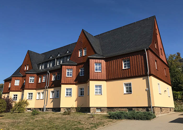 Die Eigentümergenossenschaft entschied sich für die aufwändigere, aber hochwertigere Variante. Also hat der Malerbetrieb Salzer die Fassade zuerst aufgehellt mit Pullex Renoviergrund im Farbton Beige. Jetzt war es vorbei mit dunkel und düster und das Fichtenholz war wieder fit für einen hellen, lasierenden Anstrich: Dieser erfolgte mit Pullex Top-Lasur im Farbton Kastanie. „Alle Bewohner und auch der ausführende Maler sind mit dem Ergebnis sehr zufrieden“, berichtet Michael Rausch. „Aus dem Schreckenshaus im Erzgebirge ist ein schmuckes Schlösschen geworden, wie es sich gehört“, lacht er.