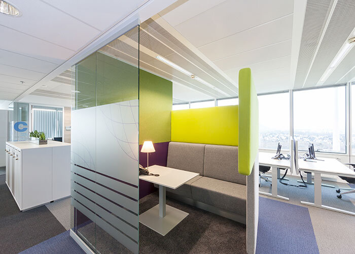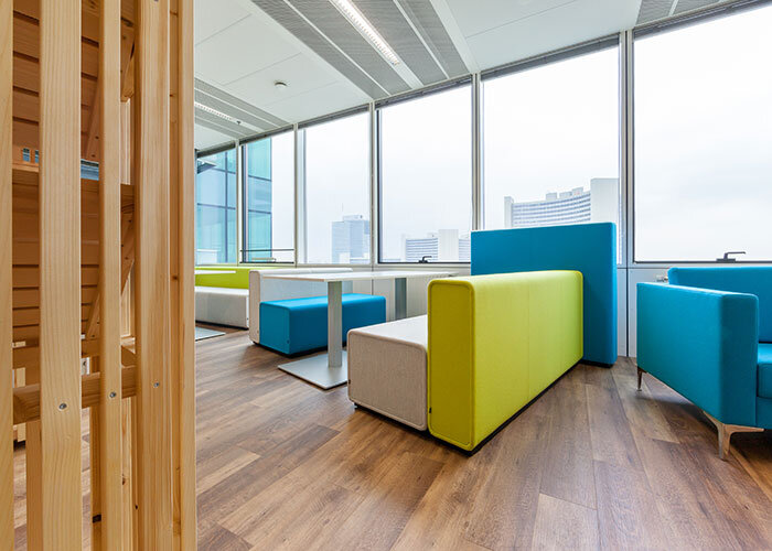 Morgens rein ins Büro mit vier weißen Wänden, am normierten Schreibtisch Platz nehmen, und abends wieder raus? Diese Zeiten sind vorbei! Auf jeden Fall sind sie das bei Alcatel-Lucent in Wien, wo im 13. und 14. Stock des Saturn Towers ein Arbeitsort entstanden ist, der mehr einer Landschaft gleicht, als Bürozimmern: flexibel, dynamisch, kommunikativ. 3.100 Quadratmeter ist das flexible Arbeitsplatzkonzept groß, auf denen 170 Arbeitsplätze, 18 Rückzugsräume, 3 Quiet Booths und 13 Besprechungsräume harmonisch zusammenspielen und den Mitarbeiter­innen und Mitarbeitern immer den richtigen Raum bieten, für das, was sie gerade beschäftigt.