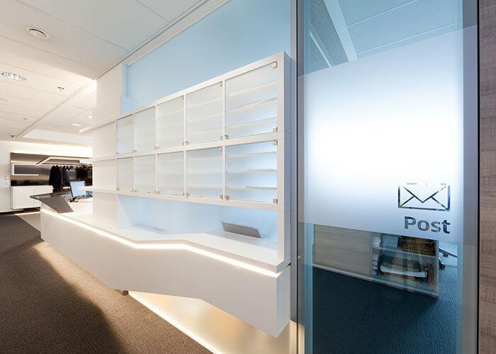 „In welchen Räumlichkeiten arbeitet eine dynamische, flexible, mobile Organisation wie Alcatel-Lucent? Wie muss das Büro aussehen, das dieses Arbeiten nicht nur ermöglicht, sondern fördert? Wie erreichen wir, dass das Büro auch für zukünftige Entwicklungen gewappnet ist?“, das sind die Fragen die sich Architekt Klaus Rösel zu Beginn des Projektes stellte. Seine Antwort: Farben und Materialien schaffen wohnliche Bereiche mit unterschiedlichem Nutzen. Neben Stoff, Glas und Beton ist eines dieser Materialien Holz, massive Fichte – keine Selbstverständlichkeit bei einem Büroprojekt in dieser Dimension. Verantwortlich für das Holz und alle Sondermöbel, mit denen der Architekt individuelle Gestaltung und Flexibilität in die Räume bringt, war die niederösterreichische Tischlerei Krumböck. „Für uns als ausführenden Betrieb ist es toll, bei einem Projekt mitzuarbeiten, wo jedes Detail zählt und Wert gelegt wird auf natürliche Materialien wie Massivholz