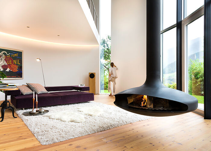 Helle Farben dominieren hingegen im schlicht gehaltenen, eleganten Wohnraum: Die Holz-Alu-Fenster zeigen sich innen in einem sanften Weiß (ADLER Aquawood Dickschichtlasur), wie auch die Küche, die frei stehende Badewanne oder die Teppiche. Ein ganz besonderer Hingucker ist der freihängende Kaminofen. Wenn hier die Flammen knistern, während draußen die letzten Sonnenstrahlen die weißen Kieselsteine in ein sanftes Licht tauchen, ist klar: Vier Jahre Planung haben sich gelohnt!