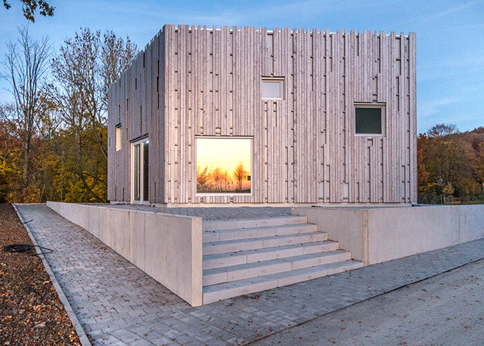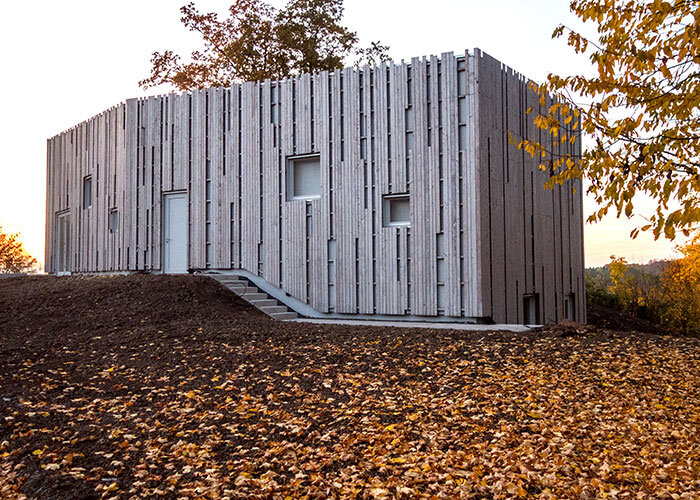 Sauer Architekten haben ein Gebäude geschaffen, das sich als moderner Kontrapunkt zur historischen Klosteranlage präsentiert und doch harmonisch in die Umgebung einfügt. „Einerseits sollte es natürlich dem Denkmalschutz entsprechen, andererseits muss ein Besucherzentrum aber auffallen, um möglichst viele Interessierte anzuziehen“, beschreibt Christian Sauer den planerischen Balanceakt. Mit seinem sechseckigen Holzrahmenbau ist ihm dieser perfekt geglückt. Vor allem dank der außergewöhnlichen Fassade: „Wir wollten mit dem heimischen Baustoff Holz regionalen Bezug schaffen und quasi das Kloster weiterbauen“, erläutert er: „Im Gegensatz zum Alpenraum wurden in Westfalen Holzschalungen immer senkrecht angebracht. Diese Tradition haben wir aufgenommen und ermöglichen dadurch Assoziationen zu den alten Holzbauten der Region.“ Dass so manchen das Besucherzentrum an eine „runtergekommene“, lückenhafte Scheune erinnert, ist somit durchaus erwünscht. Der zweite Blick enthüllt dann aber eine ausgeklügelte Konstruktion und Konzeption: Hinter der Lärchenholzfassade befindet sich ein lichtraues, lackiertes Alublech. Dieses dient als Reflexionsfläche für die nächtliche Illuminierung in verschiedenen Farben – und verhindert zugleich, dass sich Vögel oder Fledermäuse in der Dämmung einnisten. Die Holzschalung dient zwar als Sitzmöglichkeit, ist aber als Nistplatz zu zugig, daher brachten freiwillige Helfer am gesamten Klostergelände zusätzliche Nist- und Brutkästen an. Apropos freiwillig: Die gesamte Fassade bauten ehrenamtliche Helfer. „Wir haben uns deshalb schon früh auf die Suche nach einer Beschichtung begeben, die auch von ungelernten Freunden der Abtei einfach und gut verarbeitet werden kann“, sagt Architekt Sauer. Mit Pullex Silverwood von ADLER stieß er auf die ideale Lösung: Der Anstrich im Farbton Silber garantiert besten Holzschutz und macht das Besucherzentrum zum magischen Anziehungspunkt: Für alle, die mehr über die Klöster der Region erfahren und damit einen Beitrag zur Zukunft des ländlichen Raums leisten wollen.