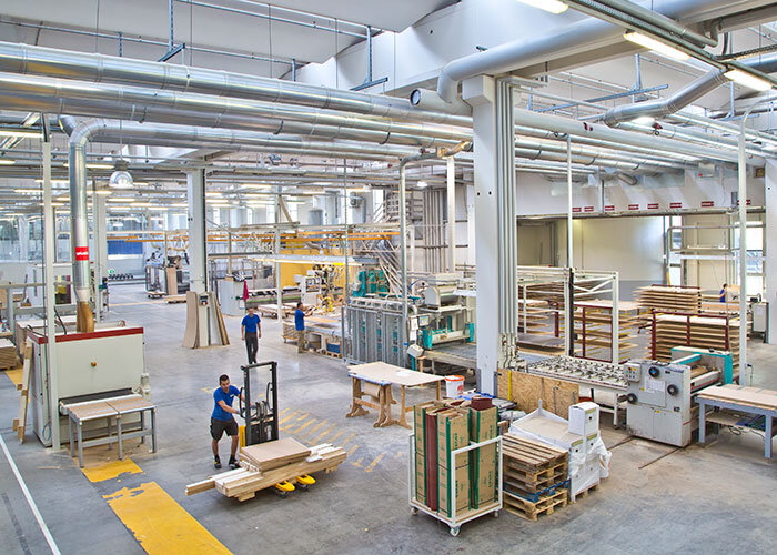 Mehr Platz: Das hat der Tiroler Türenhersteller Koch dringend gebraucht und nun einen Ort gefunden, der perfekt zu der Philosophie des Unternehmens passt. Fast schon kitschig, wie der grüne Turm inmitten blühender Wiesen in die Höhe ragt. Daneben plätschert die Sill fröhlich vor sich hin. Sonnenstrahlen fluten die riesige Halle und kitzeln gelegentlich einen Mitarbeiter an der Nase. Zumindest mehr, als etwaiger Staub. Denn davon ist in der Halle kaum einer zu finden. Alles ist sauber, übersichtlich, hell, freundlich. Fast fühlt man sich an ein anderes Werk in der grünen Wiese erinnert. Und an dessen langjähriges Motto – „Saubere Arbeit, saubere Umwelt.“ ADLER und Koch haben eben viel gemeinsam. Vielleicht verstehen sich die Partner deshalb so gut.