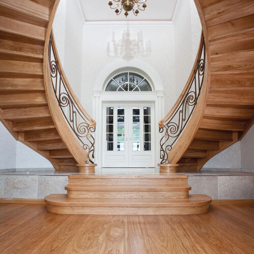 „Ich kreiere einzigartige Räume und die individuelle Realisation jedes einzelnen meiner Projekte macht aus unseren Treppen, die ja eigentlich Gebrauchsgegenstände sind, unnachahmliche Stücke. Zu so einer Treppe gehört ein Boden, der ihren Charakter unterstreicht und ihre Schönheit zur vollen Geltung bringt.“ Das sagt Firmenchef Stanislaw Marchewka über seine Arbeit. Dass es sich dabei nicht um ein Lippenbekenntnis handelt, beweisen er und sein Team mit jedem ihrer einzigartigen Objekte. Eines der glänzendsten Beispiele ist eine Einfamilienvilla in Berlin. Wer sie betritt, hat das Gefühl in ein Schloss zu kommen. Die Bewohner müssen sich jeden Tag fühlen wie ein Königspaar, wenn sie über die langen Dielen und die geschwungenen Treppen aus Eiche gehen.
