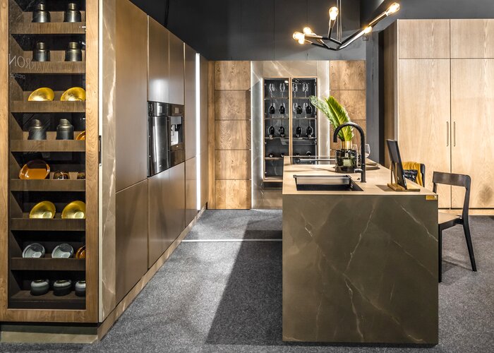 Stellen Sie sich vor, Sie bekommen ein Geschenk; ein kleines, schlichtes Schächtelchen. Sie öffnen es und darin glänzt ein erlesenes Schmuckstück. Genau dieses Gefühl haben die Kunden der polnischen Firma Halupczok jedesmal, wenn sie die Tür zu ihrer Küche öffnen. Mit dem neuen Design „Marrone“ hat Halupczok eine Küche geschaffen wie vom Juwelier – mit Edelmetall aus ADLER-Dosen. Auf der Messe „warsaw home“ hat sie die Besucherinnen und Besucher mit ihrem Glanz verzaubert.