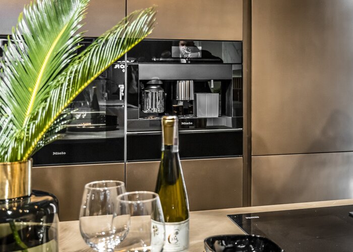 Zauberhaft ist auch das Spiel mit den Untergründen. Bei der Rückwand wurden MDF-Platten verarbeitet. Der Bronzeeffekt kommt hier ganz ebenmäßig und flächig zur Geltung und lässt die Wand ruhig und edel wirken. Beim Küchenblock wählte Halupczok einen lebendigen Untergrund mit Marmorstruktur, der alle Facetten der Bronze zum Glänzen bringt und dem massiven Block Leichtigkeit verleiht. Dass die metallische Beschichtung selbst auf Echtholz eine bezaubernde Wirkung hat, beweisen die Seitenschränke: Hier wurde gebürstete Eiche komplett in Bronze "gegossen“. Dabei verschmelzen die schönsten Eigenschaften von Holz und Metall zu etwas Neuem, Spektakulären, das doch ganz selbstverständlich wirkt. Einmal ist das neue Modell, das die Designerin Anna Dzierżanowska entworfen hat, schon bei einem Privatkunden eingebaut, fünf weitere Bestellungen sind in Arbeit. Eine Küche wie ein Schmuckstück – die Idee ist voll aufgegangen: exquisit, elegant, effektvoll und dennoch von zeitlosem Wert!