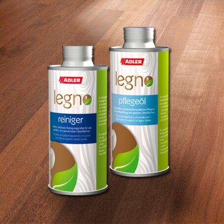 Geölte oder gewachste Oberflächen benötigen eine regelmäßige Auffrischung. Vor der Pflege muss die Oberfl äche trocken, staub- und fettfrei sein. Wir empfehlen eine jährliche Pflege mit ADLER Legno-Pflegeöl. Feuchten Sie ein Tuch mit demPflegeöl an und verteilen Sie das Öl dünn und gleichmäßig. Nach ca. 5 Minuten Trocknung können Sie den Überschuss in Faserrichtung abwischen.