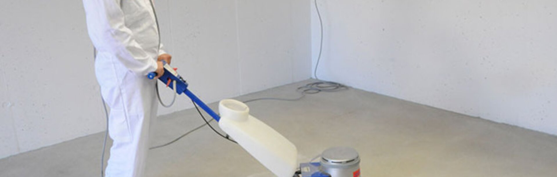 Schleifen Sie die oberste, lose Schicht des Bodens mit einer Schleifmaschine der Körnung 16 ab. Saugen Sie den Boden danach gründlich ab, um keinen Schmutz auf dem Untergrund zu haben.