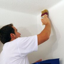 Nehmen Sie einen Pinsel und streichen Sie als erstes Ecken und Kanten der Decke.
