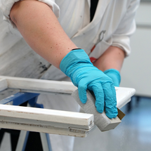 Tragen Sie eine erste Schicht des Decklacks ADLER Histo-Protect auf. Auch hier können Sie im Streich-, Roll- oder Spritzverfahren arbeiten, die Auftragsmenge liegt wiederum bei maximal ca. 100µm Nassfilmstärke.