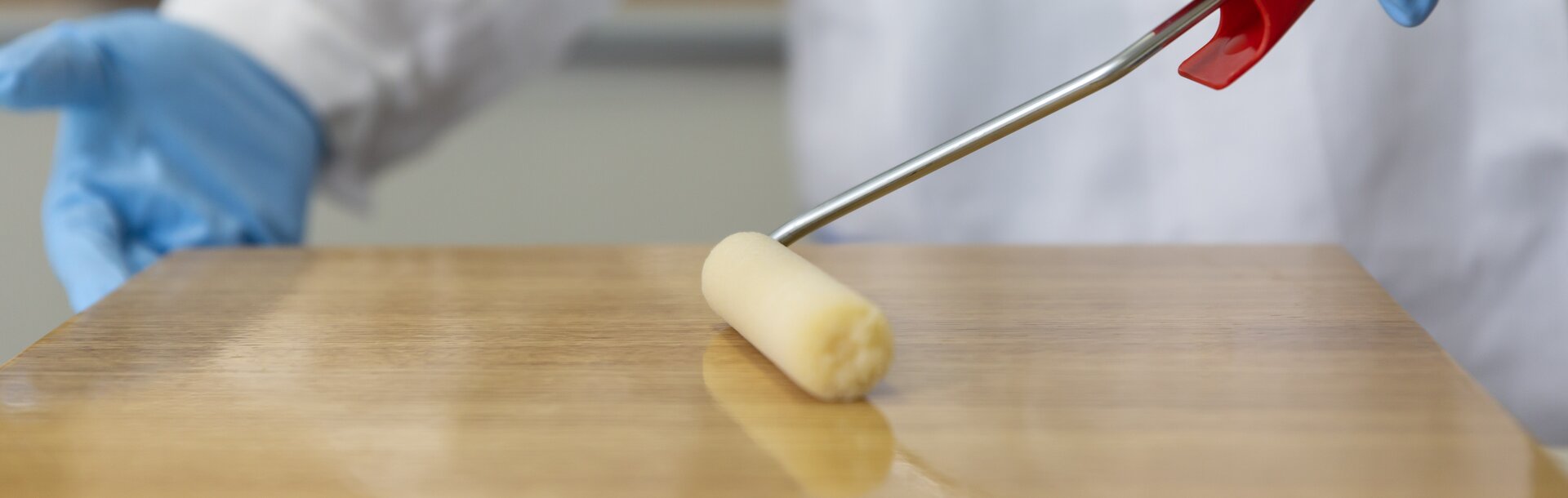 Mit Pinsel, Kurzhaarroller oder Spritzgerät wird die zweite Schicht Legno Dura-Öl aufgetragen. Lassen Sie die Oberfläche dann vor der Weiterverarbeitung über Nacht trocknen. Endgültig durchgetrocknet ist die Fläche nach sieben Tagen.