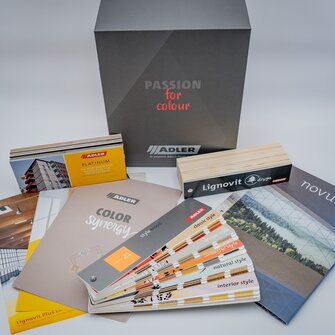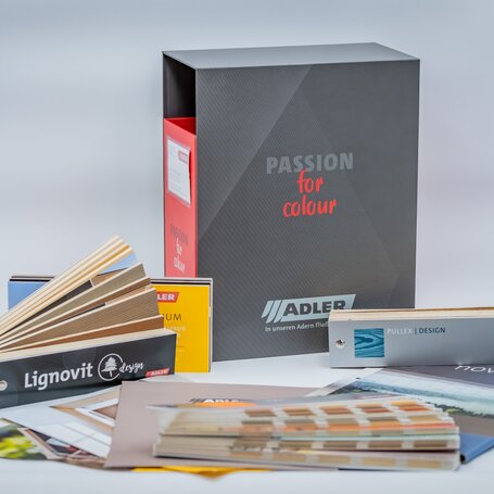 Die ADLER-Architektenbox beinhaltet alle wichtigen Werkzeuge, die ein Architekt bei der Planung und Farbberatung benötigt. Farbfächer zur Bemusterung von Fassaden und Innenwänden, aber auch eine Auswahl von Farbtönen für Holz- und Holz-Alu Fenster und Broschüren der wichtigsten Produkte.