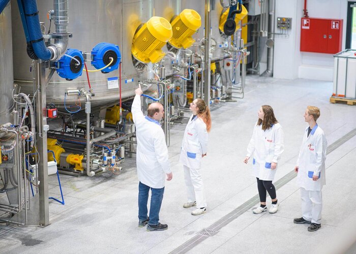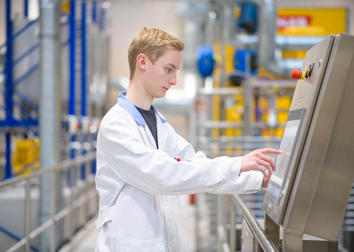 Deine Lehre dauert 3,5 Jahre. In den ersten beiden Lehrjahren lernst du die verschiedenen Abteilungen unseres Labors kennen, dazu kommt ab dem dritten Lehrjahr die praktische Ausbildung an den Anlagen in unserer Produktion, die du zu steuern und zu programmieren lernst. Für eine möglichst breite Ausbildung absolvierst du zusätzlich externe Kurse und Seminare bei unterschiedlichen Einrichtungen.
