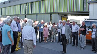 Statt gemütlich bei Kaffee und Kuchen zu plauschen, stand eine exklusive Führung durch die neuerrichte Wasserlackfabrik und das hochmoderne Hochregallager auf dem Programm. „Ich wollte immer schon wissen, was sich hinter der modernen Fassade der neuen Gebäude verbirgt, die man von der Bundesstraße aus sieht – toll, dass wir heute die Gelegenheit dazu haben!“, meinte ADLER-Urgestein Resi Kirchmair, die langjährige „Stimme des ADLER-Werks“ in der Telefonzentrale. Und wer könnte die ADLER-Pensionisten besser durch die Neubauten auf dem Werksgelände führen als Seniorchef Ing. Günther Berghofer. Gemeinsam mit Wilhelm Edinger, der in seinen aktiven ADLER-Jahren selbst maßgeblich an der Planung der neuen Fabrikanlage beteiligt war, gab er rund 50 ADLER-Veteranen einen hautnahen Einblick in die modernste Wasserlackfabrik Europas und in das neue vollautomatische Hochregallager.