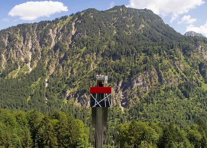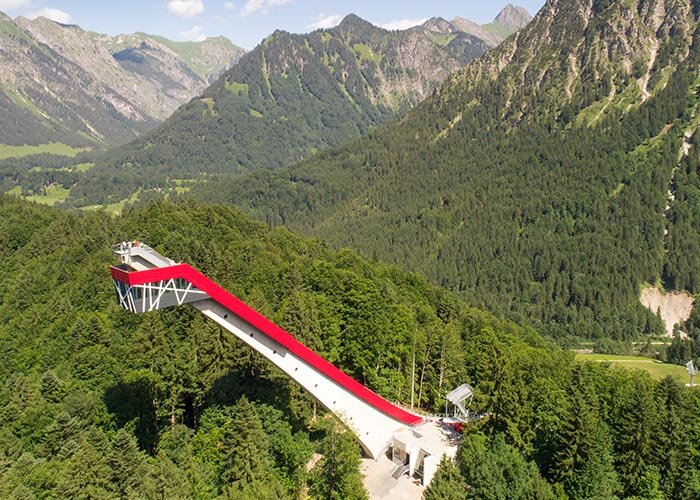 Nur zehn Monate nach Beginn der Umbauarbeiten wurde die Schanze im Februar 2017 eingeweiht und erhielt nicht nur von den Skispringern beste Haltungsnoten. Auch die Oberstdorfer sind stolz auf ihr Wahrzeichen: „Zeigefinger Gottes“, „Leuchtturm inmitten der Berge“, „schiefer Turm von Oberstdorf“: Die respektvollen Spitznamen machen deutlich, dass die Heini-Klopfer-Schanze weit mehr ist als nur eine Sportstätte. Sie ist ein architektonisches Denkmal, das einer ganzen Region seinen Stempel aufdrückt.