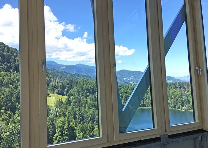 Ein Kernstück seiner Planung war der „Adlerhorst“ am Schanzenkopf. Das rundum verglaste „Penthouse“ in 72 Metern Höhe bietet einen traumhaften Ausblick über Freibergsee und Nebelhorn. In diesem behaglichen Nest bereiten sich die Skisprung-ADLER auf ihren Sprung vor. Diese Vorstellung griff Hans-Martin Renn in der Gestaltung auf, die in abstrahierter Form an ein Greifvogelnest erinnert. Den Bau der Glas- und Fassadenelemente dieses Adlerhorsts legte er in die bewährten Hände des Allgäuer Unternehmens Bietsch in Ofterschwang. Der Familienbetrieb hat sich auf komplexe Großprojekte spezialisiert – „Wir sind Spezialisten für alles, was anspruchsvoll und herausfordernd ist“, sagt Juniorchef Franz-Josef Bietsch, und das Schanzenprojekt in Oberstdorf sollte ihn diesbezüglich nicht enttäuschen.