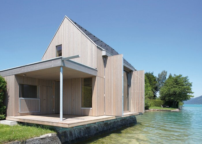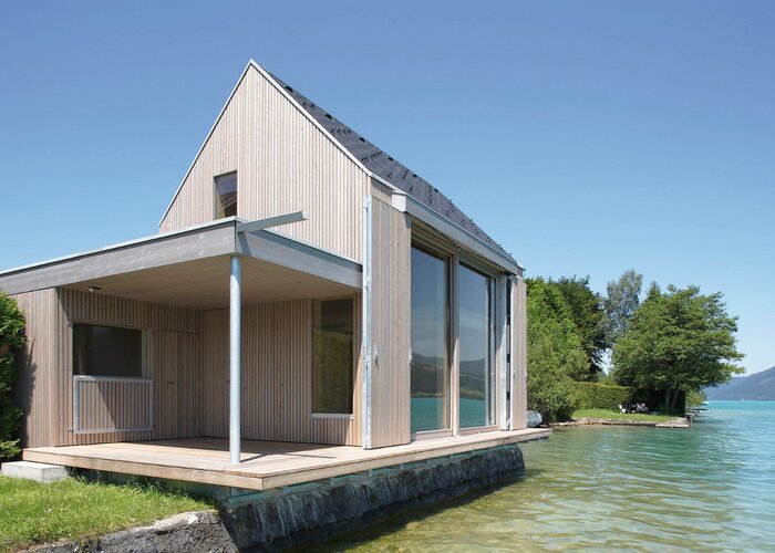 Es war einmal eine kleine Zimmerwerkstätte, an sich nichts Besonderes, aber mit einer einzigartigen Lage: direkt am Westufer des Attersees, mitten in der Natur, mit Blick auf Höllengebirge und Schafbergmassiv. Gezimmert wird dort schon seit einer Weile nicht mehr, aber so ein Häuschen aufzugeben, das fiel den Erben natürlich nicht einmal im Traum ein – lieber ließen sie es sich zum Traumhäuschen umbauen. Die gute Fee, die diese Aufgabe übernahm, hieß Franz Josef Maul vom Architekturbüro Luger & Maul in Wels. Und umsichtig wie eine gute Fee musste er wirklich arbeiten, denn der einzigartige Standort bringt nicht nur viel Schönheit, sondern auch spezielle Anforderungen mit sich.
