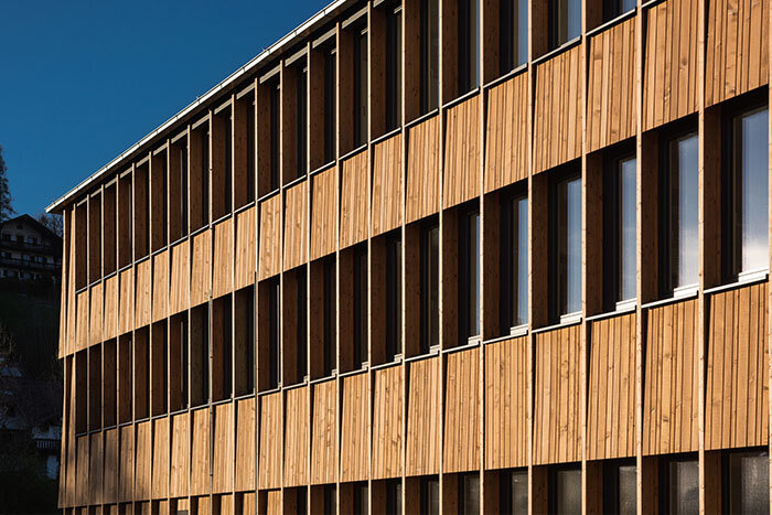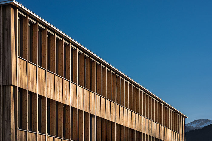 Wärme und Eleganz strahlt das „Grüne Zentrum Immenstadt“ mit seiner Holzfassade aus.