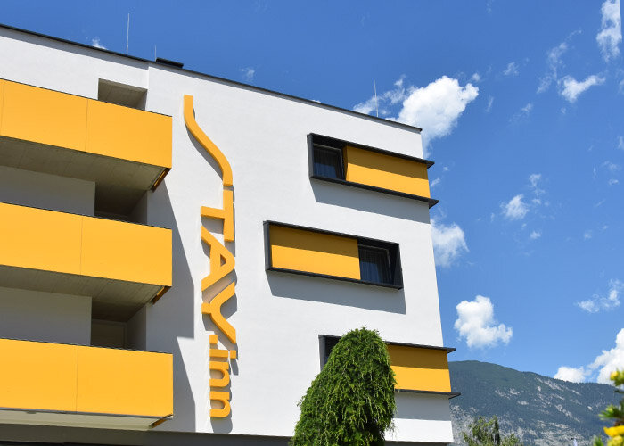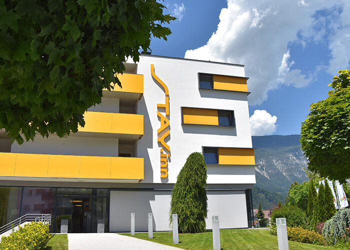 Wer hier her kommt, bleibt gerne. Oder kommt wieder. Seit exakt acht Jahren bietet das STAY.Inn-Hotel allen, die nach Schwaz kommen, eine Bleibe auf Zeit. Mit modernem Design, stilvoller Ausstattung und einzigartigem Service samt 24-h-Check-In punktet das Hotel bei Geschäftsreisenden und Touristen gleichermaßen. Kräftige und helle Farben in eleganter Kombination vermitteln einen freundlichen, einladenden Eindruck – gleich auf den ersten Blick: Denn die hellgraue Fassade mit den leuchtend gelben Balkonen, der farbgleichen Aufschrift und den passenden Fensterläden macht das schlichte, kubische Gebäude zu einem echten Hingucker.