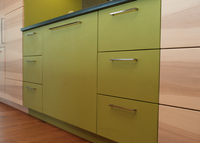 Betoneffekt sollte der Blickfang der neuen Heilos-Küche werden. Und zwar auf ganz außergewöhnliche Art: Nicht in klassischem Betongrau, sondern in Grün!