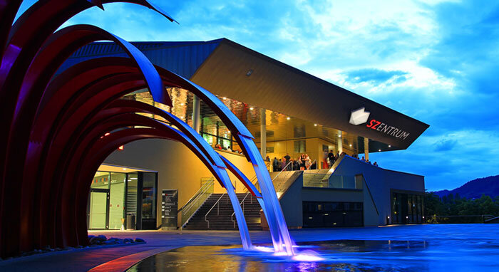„SZentrum“, so lautet der Name des neuen Schwazer Stadtsaals, der mit dem Autokennzeichen der Stadt spielt, „SZ“, und mit dem Tiroler Dialekt: „Es Zentrum“, sagen die Einwohner, wenn sie „das Zentrum“ meinen. So macht der Name dieses Veranstaltungssaales auf allen Ebenen klar: „Hier spielt sich’s ab, wenn in Schwaz etwas los ist“. Bälle, Fasching, Konzerte, Theater – das SZentrum muss für die verschiedensten Anlässe den passenden Rahmen bieten und tut das mit einem stilvollen Mix aus edlen und farbigen Oberflächen.