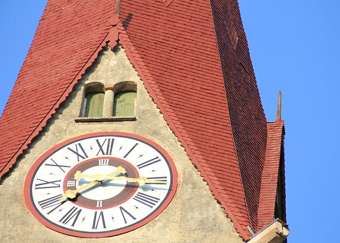Der Name des Herrn war und ist zu allen Zeiten ein fester Turm, der dem Gläubigen Sicherheit bietet. Doch das Haus des Herrn in Jenbach in Tirol, die über 500 Jahre alte St. Wolfgang Kirche, hat mit den Anfechtungen des Weltlichen zu kämpfen: Nicht mehr ganz so fest war zuletzt ihr Turm. Bevor die Sicherheit der Gläubigen beeinträchtigt worden wäre, wurde sein Schindeldach umfassend saniert. Nun leuchtet es wieder weithin sichtbar im traditionellen Rot der Erzdiözese Innsbruck.