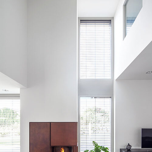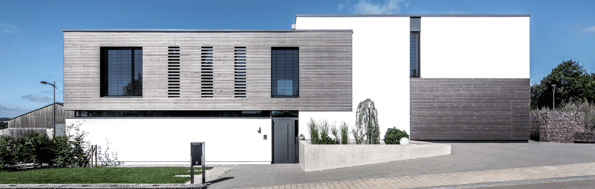 Aus Licht und Luft speist sich auch der Energiehaushalt des Gebäudes. Mittels Wärmepumpe versorgt die über die Luft gewonnene Energie das Niedrigenergiehaus mit Wärme und Brauchwasser, eine Lüftungsanlage mit Wärmerückgewinnung und Erdwärmetauscher sorgt für Luftaustausch und kühle Nächte im Hochsommer. Das Prinzip von Licht und Luft setzt sich auch in der Fassadengestaltung des Einfamilienhauses fort, für die weißer Putz mit Holz kombiniert wurde.