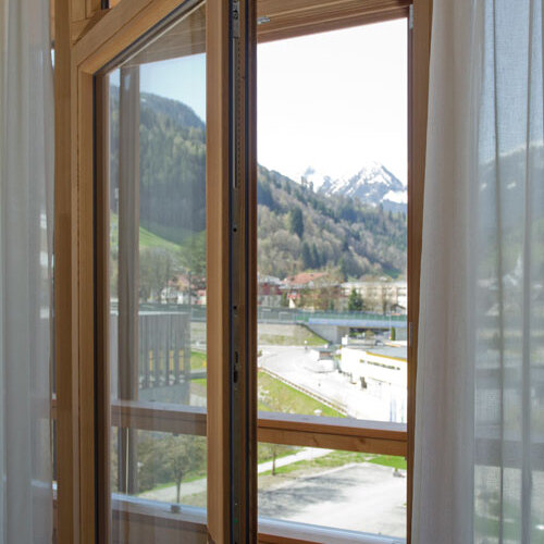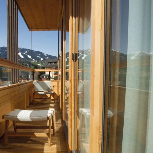 „Der Blick durch die Fenster von Katzbeck lässt die Zimmer und Suiten selbst Teil der Natur werden“, beschreibt Julia von Deines, die stellvertretende Hoteldirektorin des Falkensteiner Schladming, die Wirkung der Holzfenster. Und sie weiß: Ihre Gäste sind Naturliebhaber. Wer nach Schladming kommt, begeistert sich für den Bergsport. Speziell für die Ski-WM 2013 wurde das Vier-Sterne-Plus-Haus errichtet – in einer Rekordbauzeit von achteinhalb Monaten! Immerhin handelt es sich um drei Trakte, 130 Zimmer und Suiten, Restaurant, Wellness-Bereich und eine großzügige Gartenanlage.