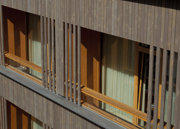 Den Grundstein für diesen „Wohlfühlcharakter“ legten die Architekten schon bei der Planung, indem sie sich bewusst für heimische Materialien und Produkte entschieden. „Unsere Zimmer wurden mit gehacktem Fichtenholz aus Admont ausgestattet, wir haben Steine aus dem Sölktal verwendet oder heimischen Loden für die Sesselbezüge“, erzählt Julia von Deines. Der besondere Charme, den die heimischen Materialien dem Haus verleihen, ist überall spür- und sichtbar – auch und gerade bei den Lärchenholzfenstern der Firma Katzbeck. Sie sind mit einem Systemaufbau mit Aquawood Lärchenöl beschichtet, das die Fenster schützt und den natürlichen Holzcharakter bewahrt, ihm seidigen Glanz und eine natürliche Anfeuerung verleiht. Anders als bei allen anderen Produkten dieser Art wird Aquawood Lärchenöl von ADLER nicht auf Lösemittelbasis, sondern ganz umweltfreundlich auf Wasserbasis hergestellt. Das hat auch den Vorteil, dass es sich sehr einfach verarbeiten lässt und vor allem schnell trocknet. Katzbeck-Fenster mit ihren Beschichtungen von ADLER waren also genau das Richtige für dieses Schladminger Hotel mit Alpen-charme, das in Rekordzeit gebaut wurde.