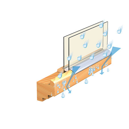 Durch Tauchen oder Fluten des Fensters mit Aquawood Intermedio wird eine perfekte Rundumversiegelung erreicht. Somit wird die Feuchtigkeitsaufnahme des Fensterholzes nachweislich gesenkt.